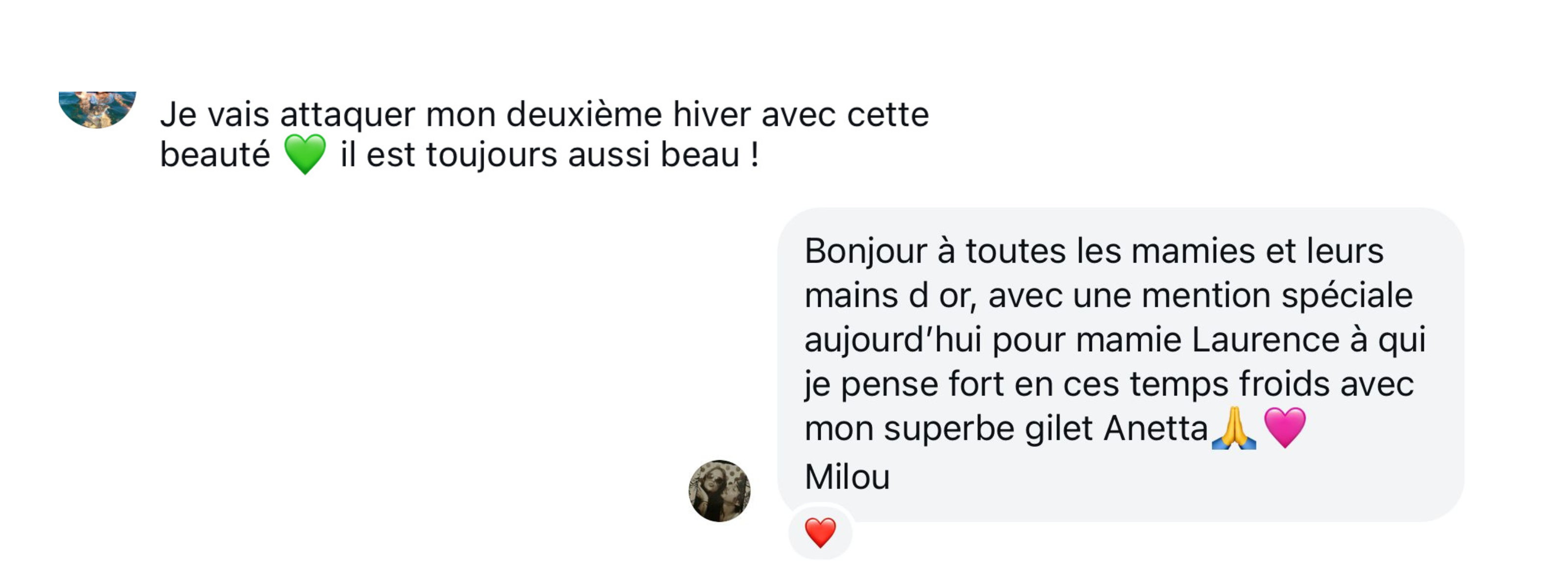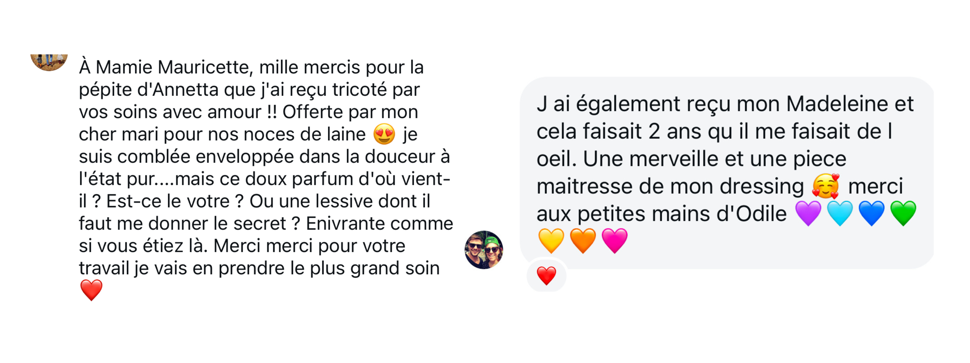 L’AMOUR EST LA FORCE MOTRICE DERRIÈRE CHACUNE DE NOS COLLECTIONS. C’EST CET AMOUR INCONDITIONNEL POUR LA BEAUTÉ INTEMPORELLE ET POUR LA MAGIE DES MAINS DE NOS MAMIES QUI GUIDE CHAQUE FIL ET CHAQUE MAILLE.